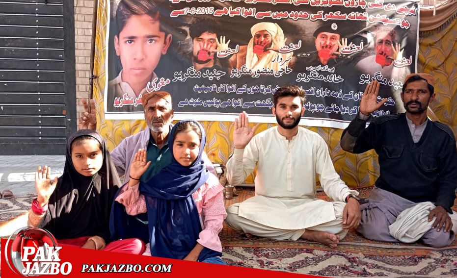 جو آج تک بازیاب نہیں ہوسکا ہے, اور جب کہ علی اصغر کے اغوا کار اور بونگا مانگنے والے نامینیٹ ہیں، پی ڈی ایس پی خالد منگریو، منظور منگریو، سعید منگریو اور جنید منگریو ہیں. اِن کے نمبر اجینسی نے ٹریس کر کے دیئے تھے۔ اگر پولیس مزید سيڈیارے نکلواتی ٹاور کی جیوفینسنگ کرواتے تو اغوا کارو کی پوری گینگ پکڑی جاتی اور بروقت میرا بیٹا بازیاب ہوجاتا، پولیس نے ایسا نہیں کیا، پولیس میرے بیٹے کے اغوا میں ملوث ہے۔ ہائی کورٹ کے حکم سے ہوم سیکریٹری سندھ نے ایجنسی کی جی آئی ٹی تشکیل دی تھی جس نے ڈھائی سال انکوائری کی، 50 میٹنگ کی۔ اس انکوائری میں ملزمان قصور وار ثابت ہوے ہیں، جی آئی ٹی نے ہائی کورٹ میں لکھ کر دیا ہے۔ کہ علی اصغر اغوا ہے۔ہم دوسری GIT بناتے ہیں جو علی اصغر کو باریاب کروائگی، اُس انکوائری کو تین سال ہو چکے ہیں، اور علی اصغر کو اغوا ہوئے دس سال ہو چکے ہیں۔ابھی GIT کے ممبر قرآن پاک پر ہاتھ رکھ کر کہی علی اصغر اغوا نہیں ہے, اور یہ چاروں جوابدار نہیں ہیں پھر میں اپنا بیٹا اللّٰہ پر چھوڑ دونگا۔احتجاجی مظاہرے میں شامل ریلوے پولیس کانسٹیبل سکھر ڈویژن زاهد حسين منگریو, احمد علی منگریو, اور شہریوں نے شرکت کی
